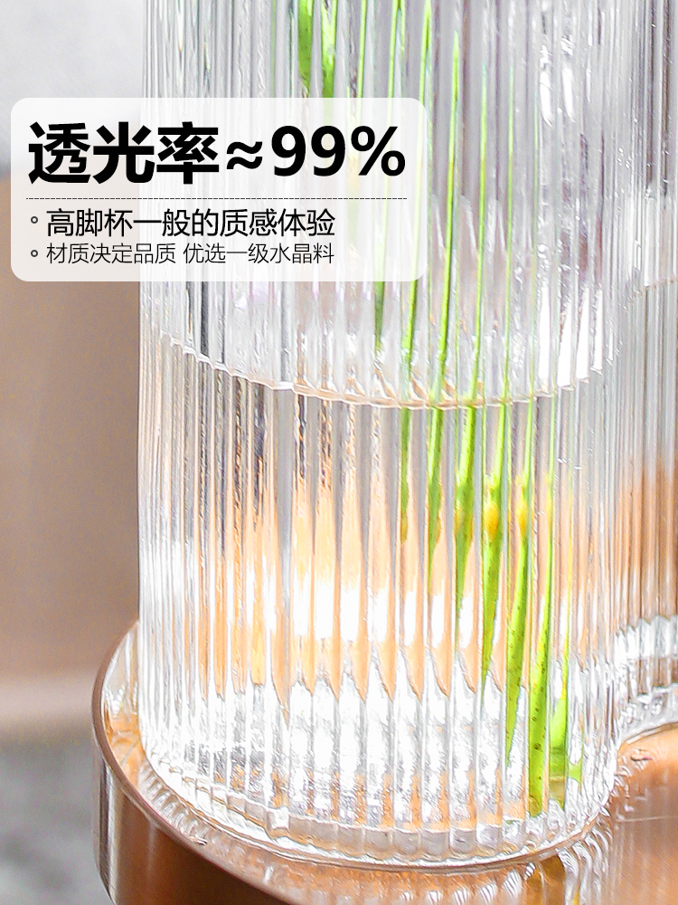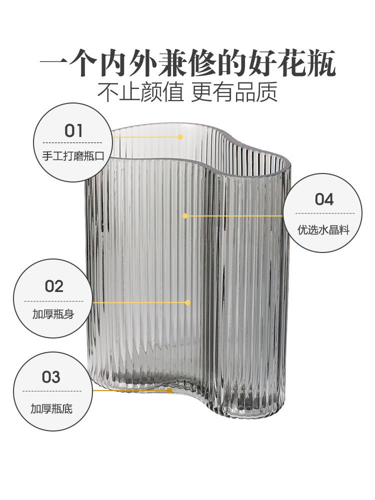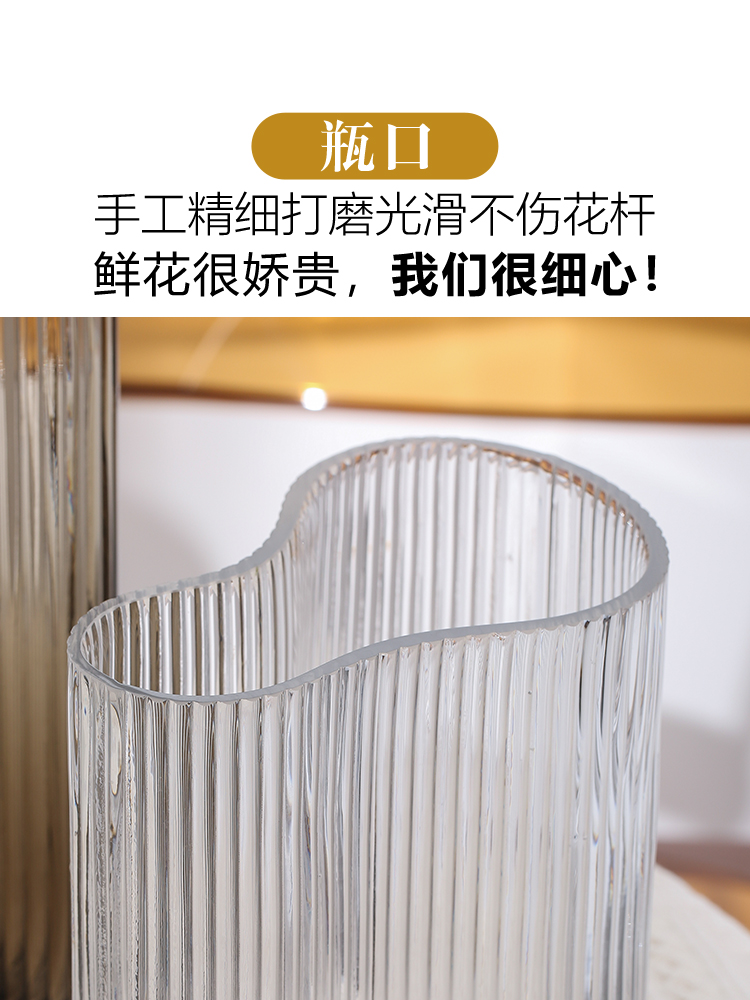 Light luxury vertical striped vase Nordic creative simple transparent glass wide mouth large net red living room dining table water culture flower arrangement