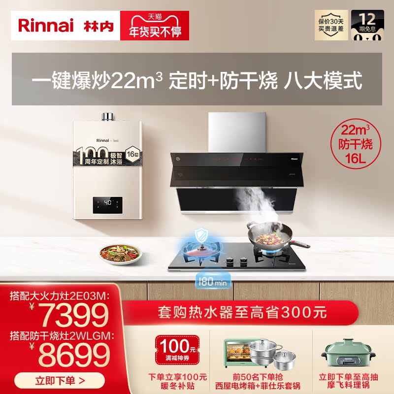 Rinnai forest C100W JUW11G 03M 2WLGM gas water heater smoke machine gas stove three-piece set