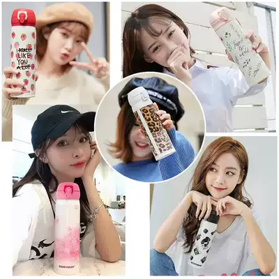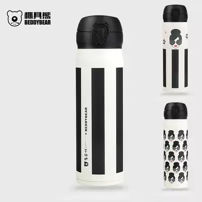 Cup bear thermos cup Adult male and female students Stainless steel portable couple simple water cup lettering cute ins