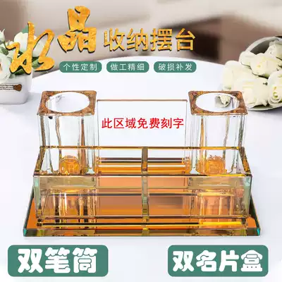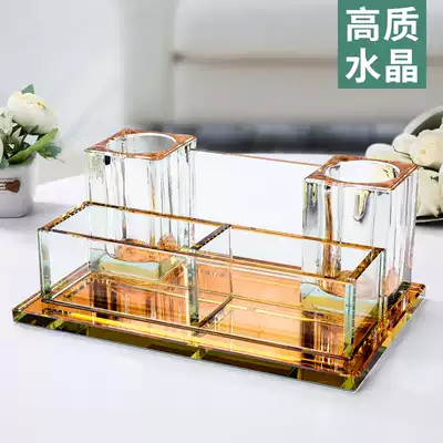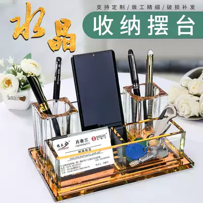 Front Desk crystal net red pen holder three-piece set custom creative practical office supplies business gifts souvenir ornaments lettering logo pen holder Nordic personality simple stationery storage box large capacity