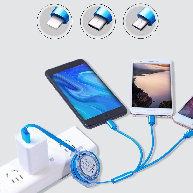 data cable three-tier three-in-one fast charging multi-function charging cable one tow three-car universal mobile phone multi-head
