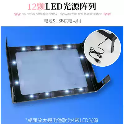 Baishitong desktop magnifying glass with lamp foldable A4 large lens reading HD 1000 mobile phone screen magnification maintenance electronic industry high power desktop bracket portable reading live broadcast for the elderly