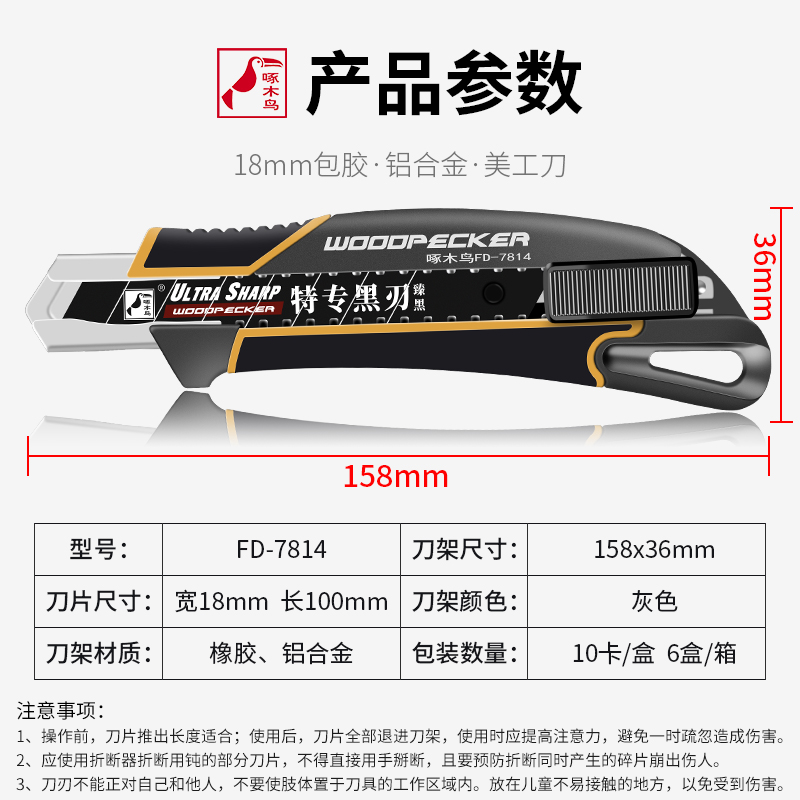Woodpecker knife frame aluminum alloy large - scale rubber cutting wallpaper knife industrial FD-7814
