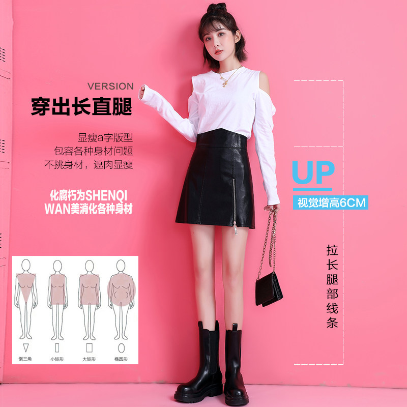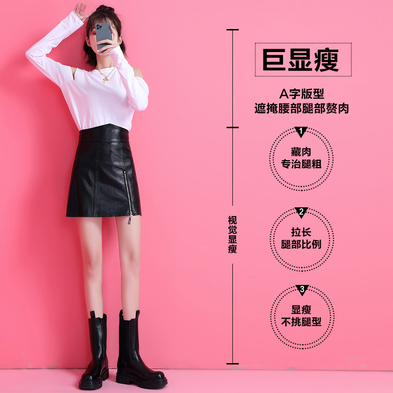 Leather skirt skirt women 2022 spring and autumn new black high waist bag hip a-line skirt autumn small leather skirt PU skirt