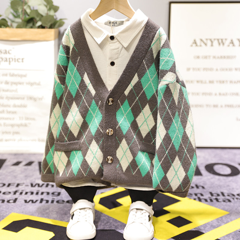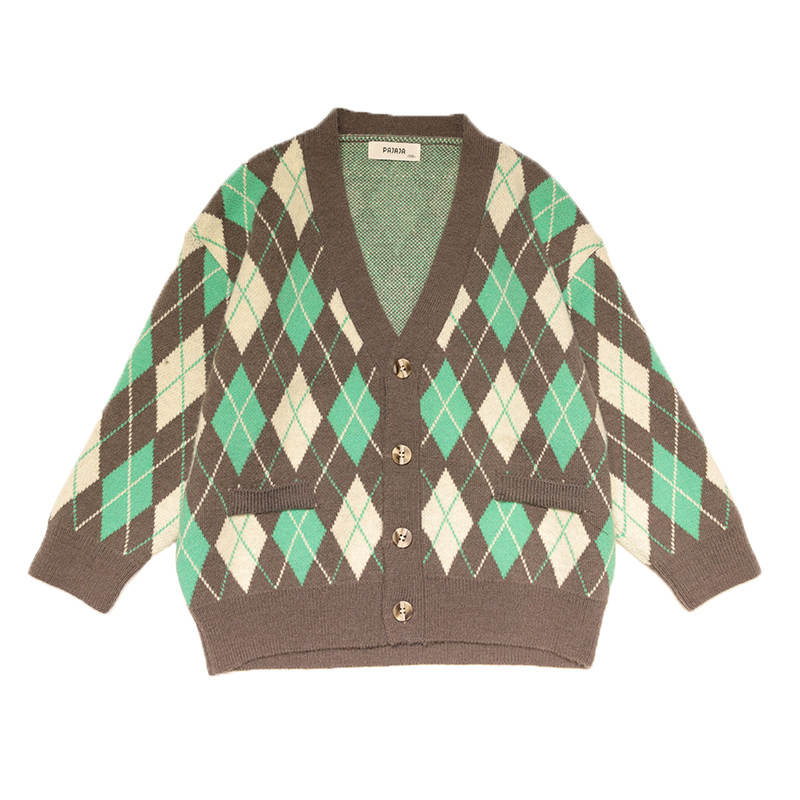 Papaya juice child clothing 2020 autumn new cardiovert boy girl jacket Korean version rhomboid plaid sweatshirt 58001