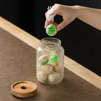 Slow-tuning hammer glass tea jars, large, medium and small sealed cans, Pu'er tea cans, moisture-proof with wooden cover
