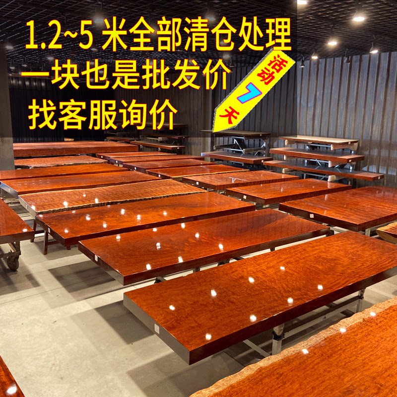 Bahua Okan Solid Wood Large Board Tea Table Bench Log Tea Table Tea Board Red Wood Flowers Pear Wood Book Table 1 8 m 2