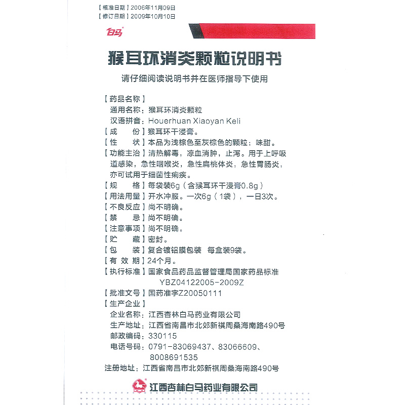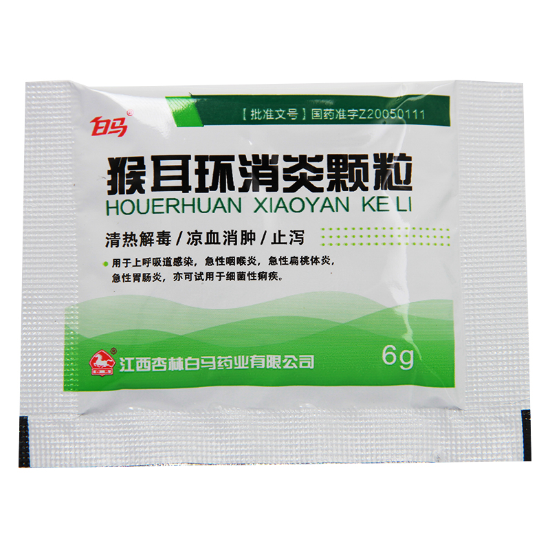 White Horse Monkey Earrings Anti-inflammatory Granules 6g * 9 Bags Acute Pharyngitis tonsitis Gastroenteritis Bacteria Dysentery Monkey Earrings Monkey Earrings Grain Monkey Earrings Granular children Adult Monkey Monkey Earrings