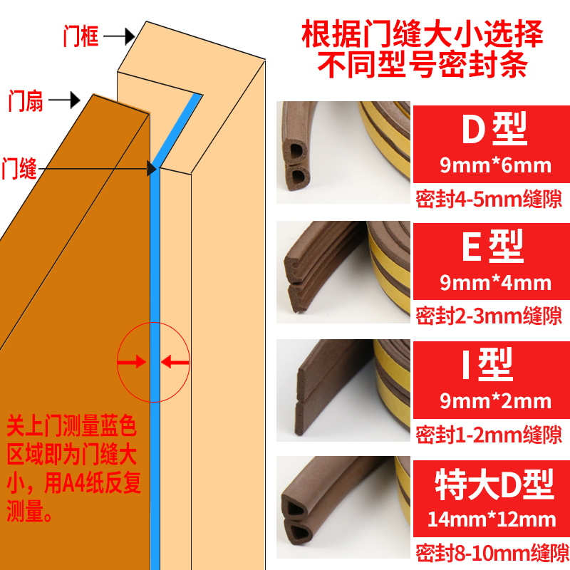 Door and window windproof sealing strip plastic steel window family slit wooden door frame soundproof and warm sticker indoor door windproof security door adhesive strip