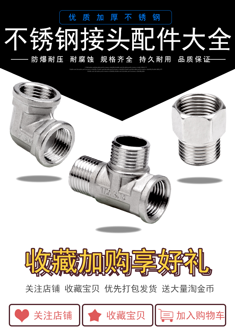 Stainless steel joint internal wire Direct 6 Sub-turn 4 Diameter Internal and external wire Elbow Tee to Silk Water Water Heating Accessories-Taobao