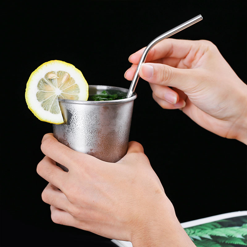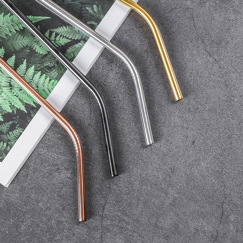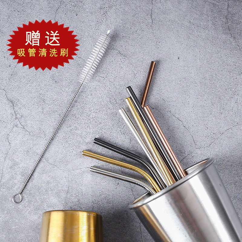 304 stainless steel straw environmental drinking straw milk tea cold drink thick straw metal elbow rooster cup iron straw portable