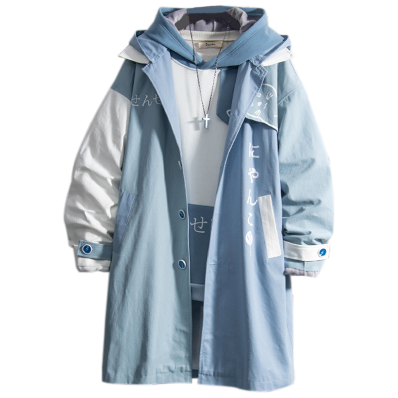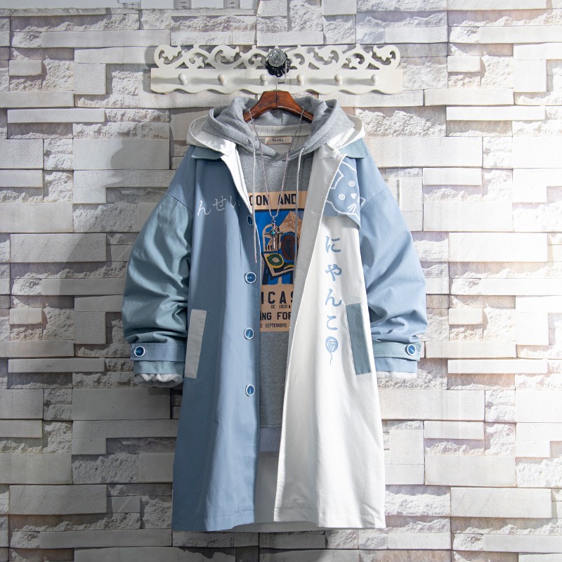 Sugar rose 2023 blue cat mid-length windbreaker jacket boy handsome spring and autumn new Japanese trend