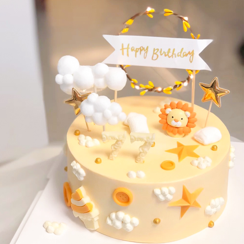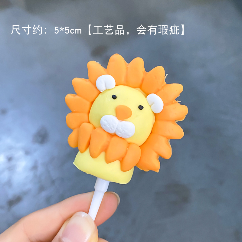 Soft pottery lion cub children baby birthday cake decoration ornaments Zoo cartoon Lion birthday plug-in