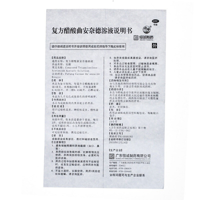Anlon Compound Acetate Triamonide Solution 15ml Allergic Dermatitis Chronic Eczema Tunanade External Medicine