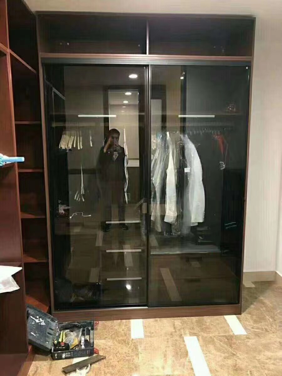 Custom wardrobe glass sliding door profiles 3 cm wide wall thickness 2 0mm can be matched with flat door to effect