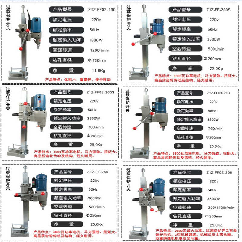 Dongcheng water drill rig FF-200S 02-250 Diamond-engineering drilling machine high power concrete opening machine 1