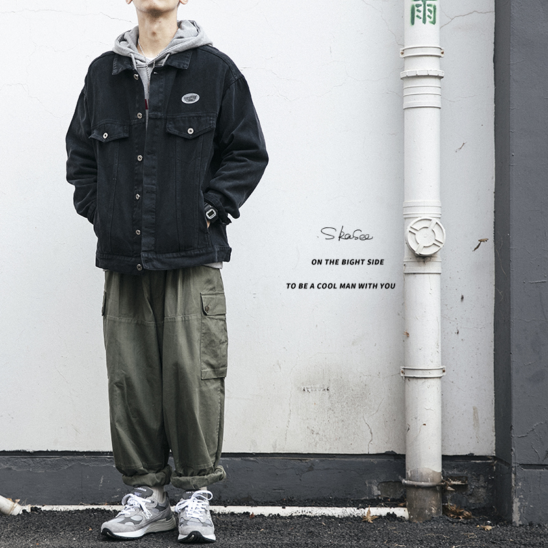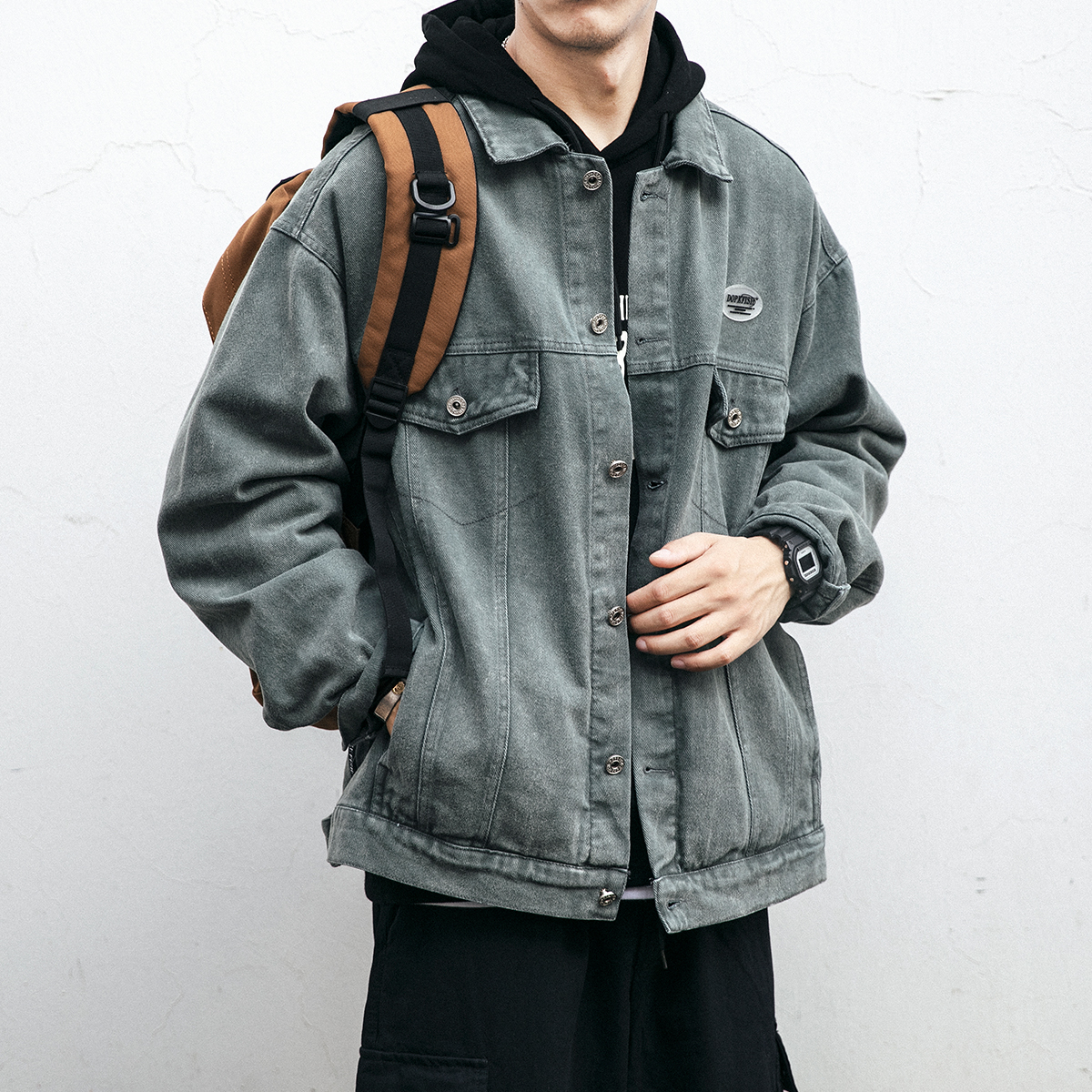 Day series retro black denim jacket men's spring and autumn Korean version trendy loose 100 lap tooling jacket lovers' blouse
