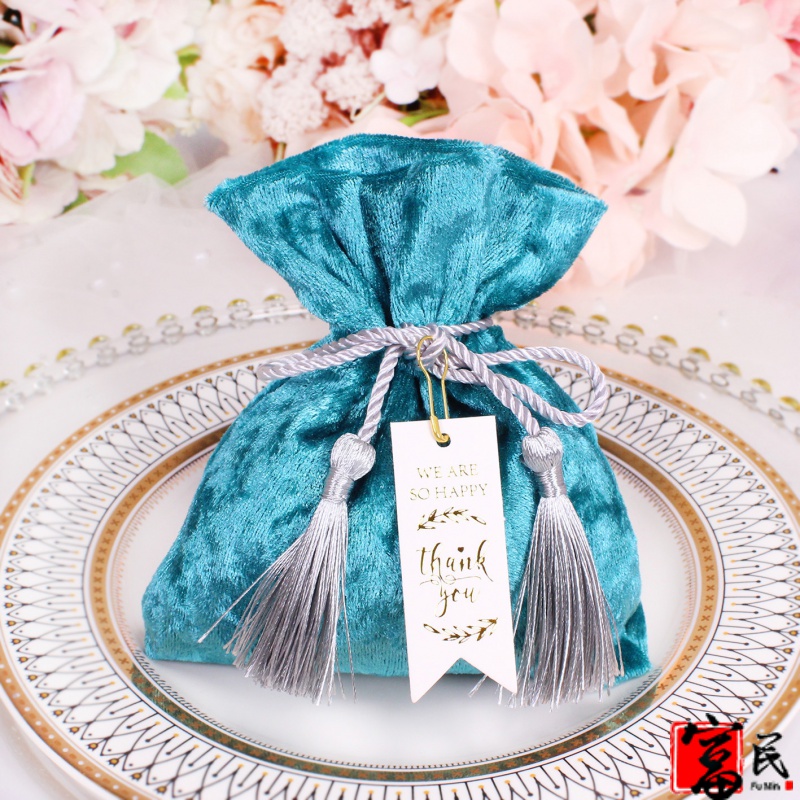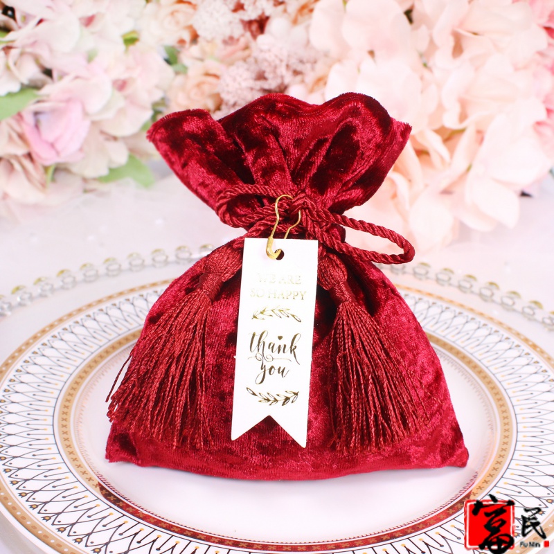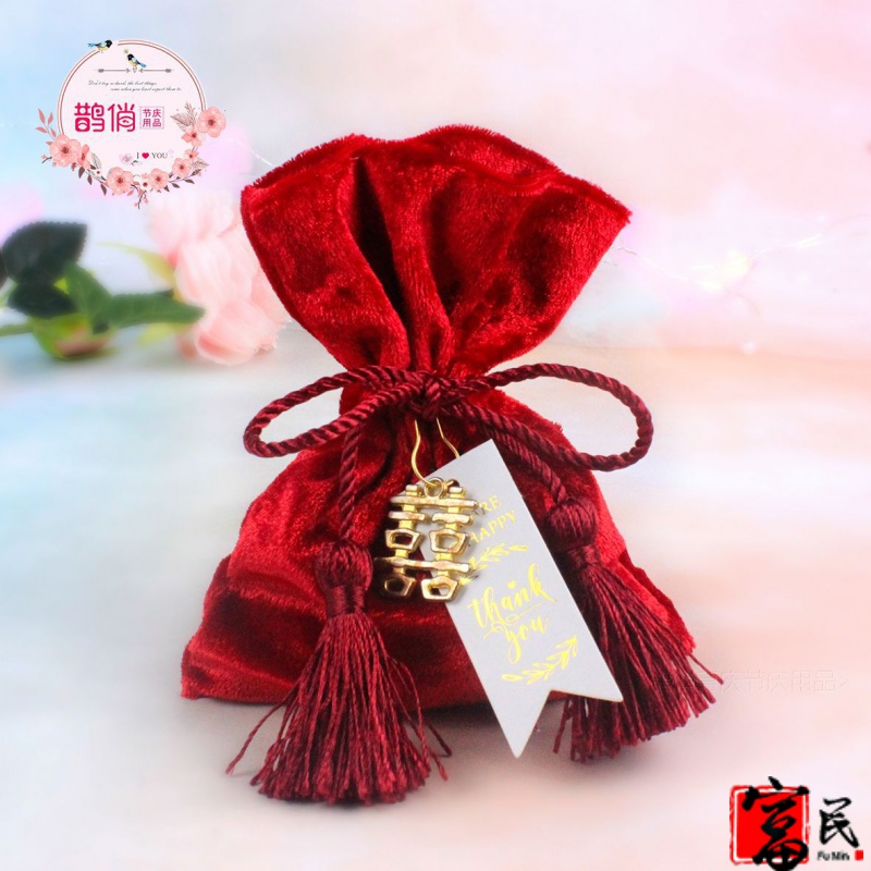 Drawstring happy candy bag Wedding creative flannel brocade Satin Happy candy bag with hand gift box Happy candy box