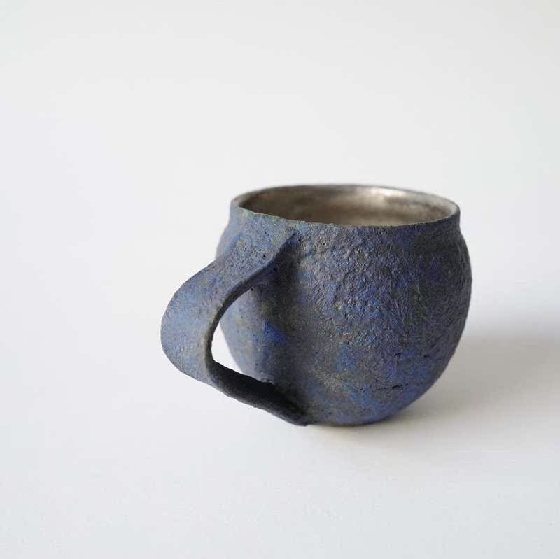Domestic spot Japanese ceramic writer hand-made high-grade sense blue platinum color coffee cup Luyu grocery