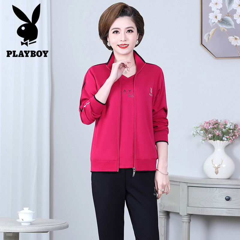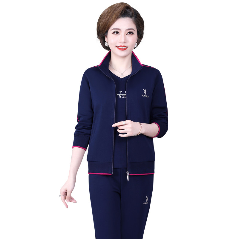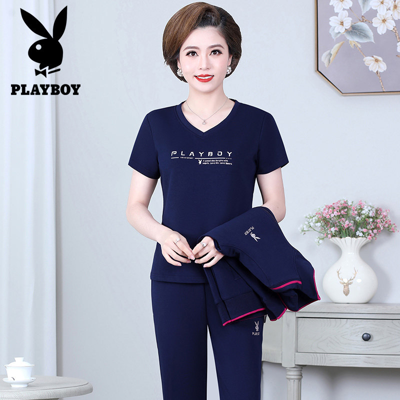 Flowers Playboy Casual Sportswear Women Suit Pure Cotton Loose Cardiovert Cotton T Mid Aged Chubby Size Mamma Dress
