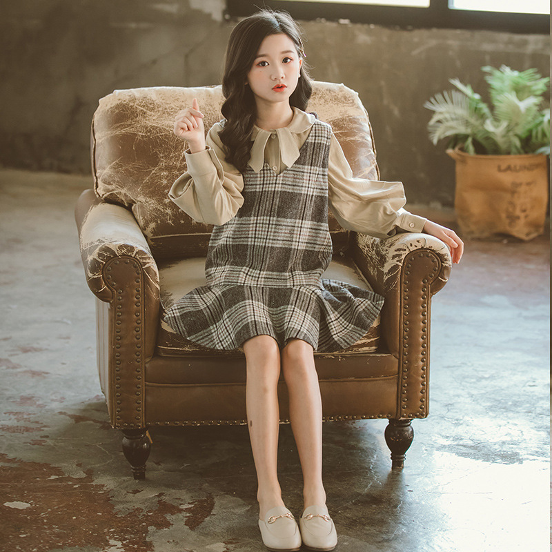 Girl Nets Red Suit Skirt 6 Spring Autumn 7 New 8 Children 9 Cuddling Bags Foreign Dress 10-Year-Old Shirts Two Sets Of Foreign Pie