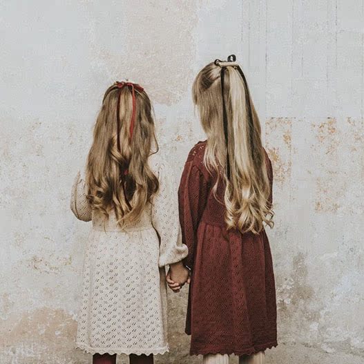 73-140 yards autumn and winter girls round neck openwork knitted bubble sleeve dress Children's wild base sweater skirt