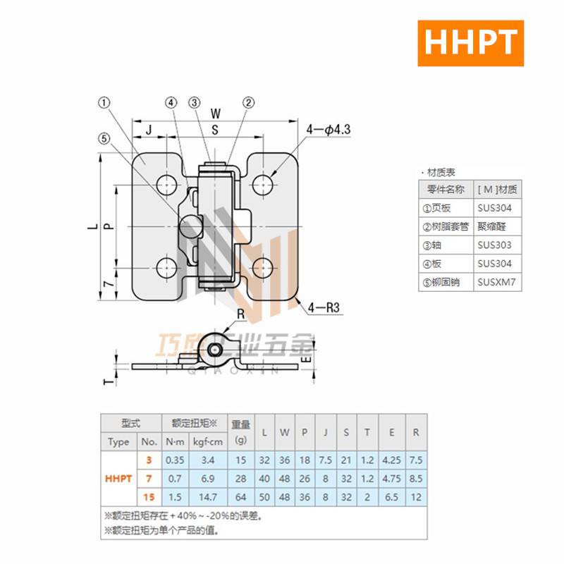 Torque damping hinge stainless steel dish HHPT3 7 15 random angle stop fixed type buffer stop hinge