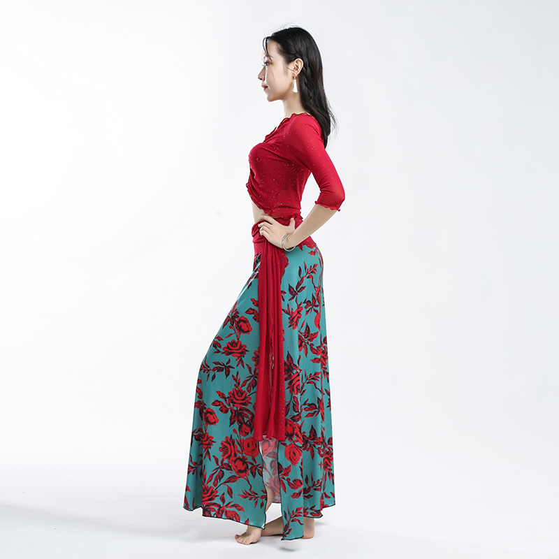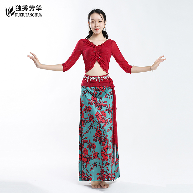 Belly Leather Dance 2021 New Suit Net Yarn Long Skirt Summer Style Beginners Practice Women Oriental Dance Dance Costumes