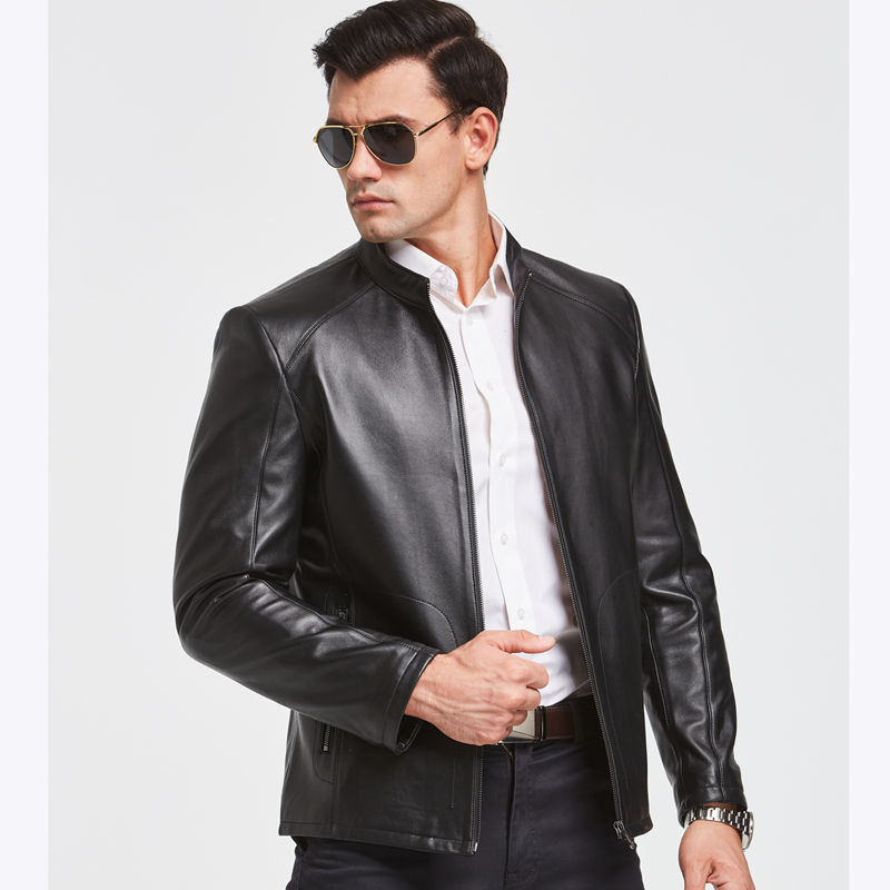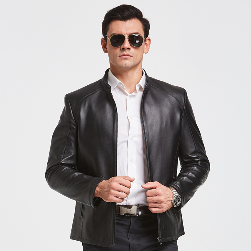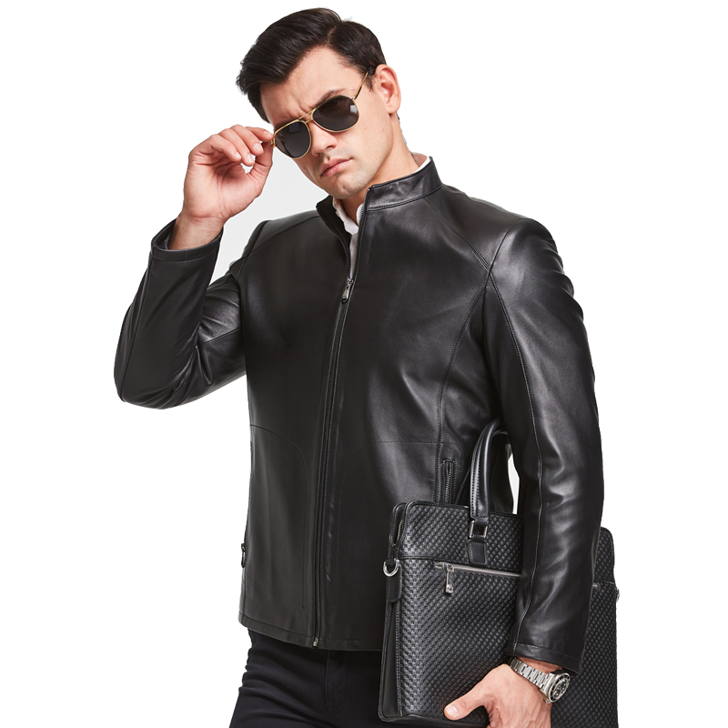 Anti-season new large size Men's clothing genuine leather leather clothes autumn Haining sheep leather Outer cover Gats up and up collar jacket chubby