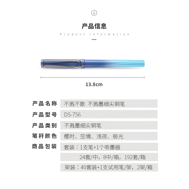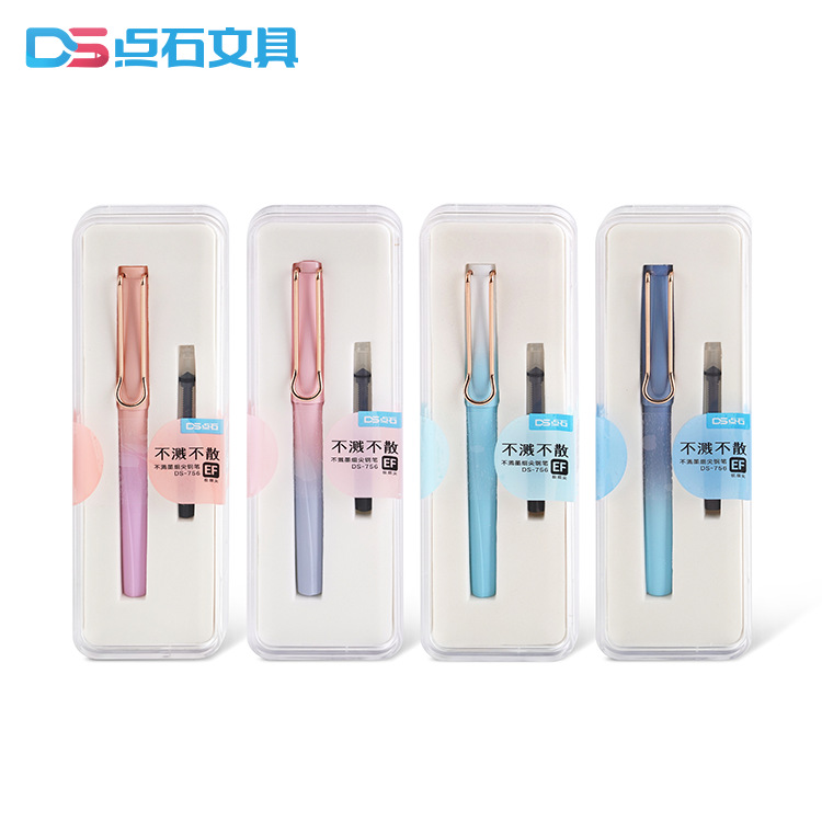 Dianshi DS non-splashing ink very fine 0 38 students practice calligraphy positive attitude ink bag suction dual-use iridium gold pen EF package tip 756