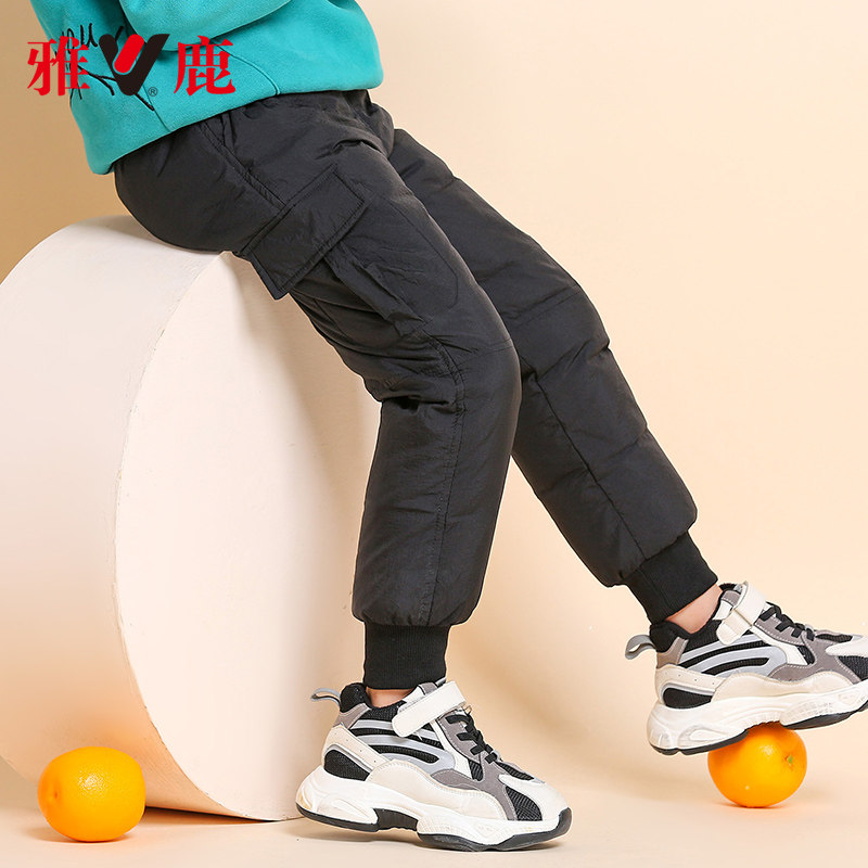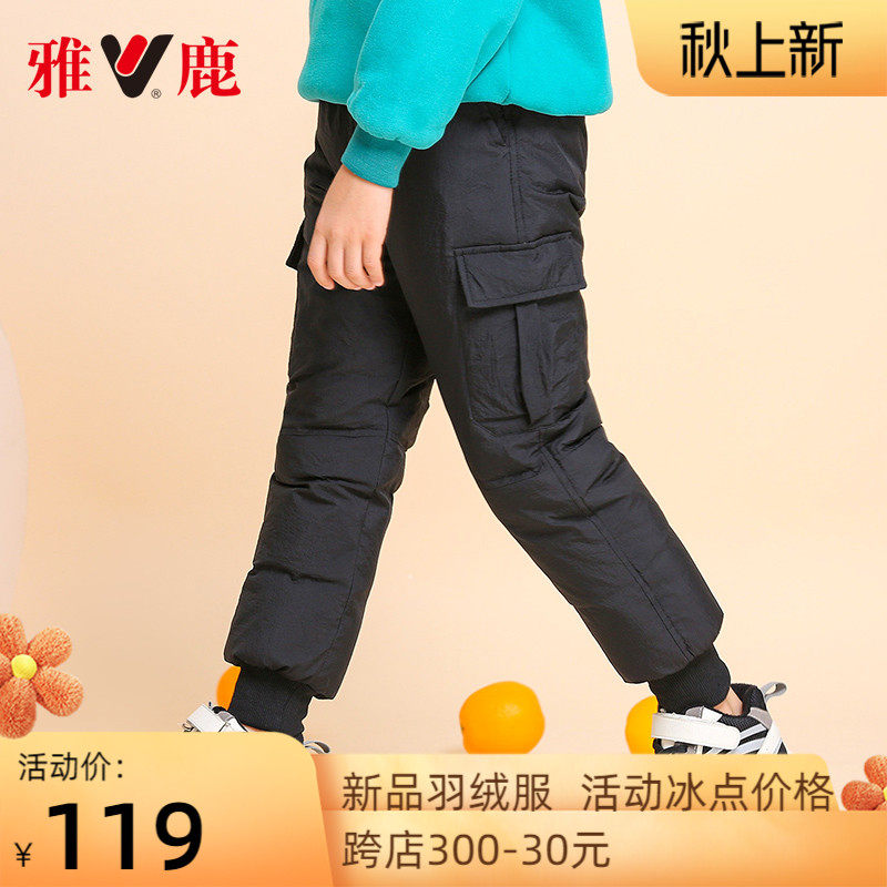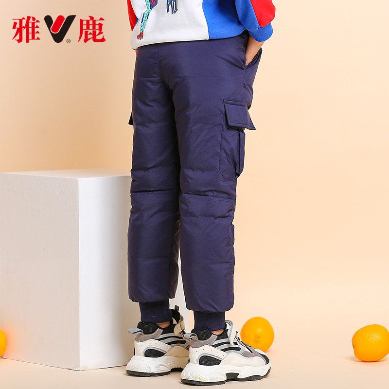 Yalu children's feather trousers thickened out wearing warm pants in big baby autumn and winter wear feather pants