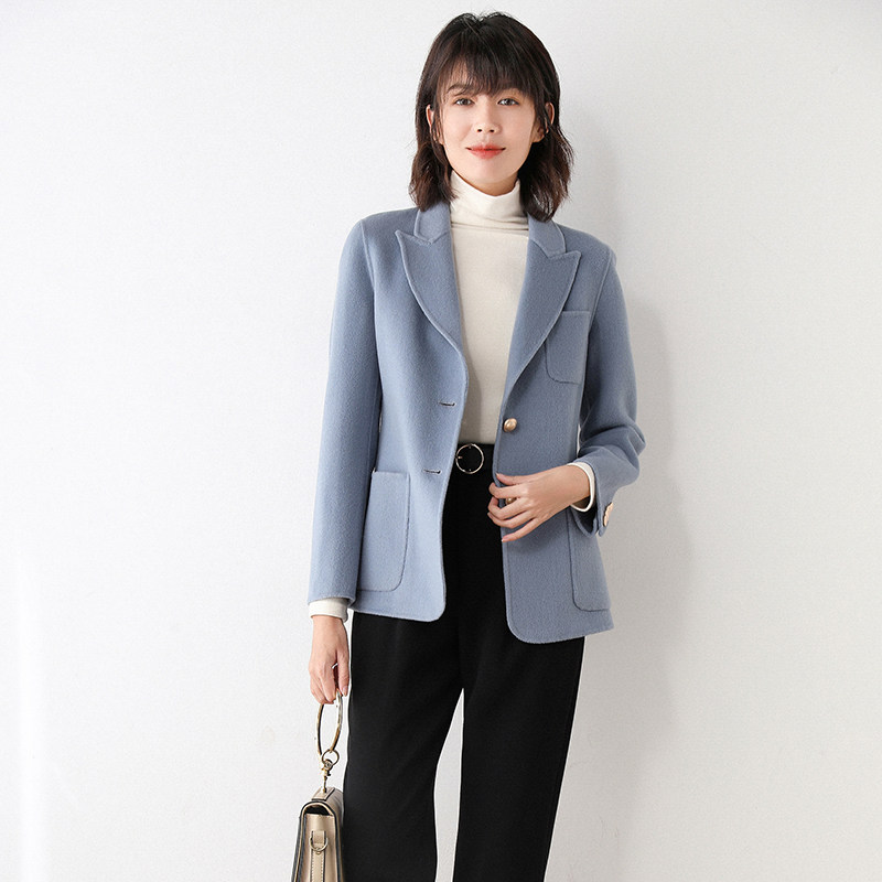 Double face cashmere suit jacket woman short 2021 autumn and winter high-end fur, what about the commuter wool, the big coat?