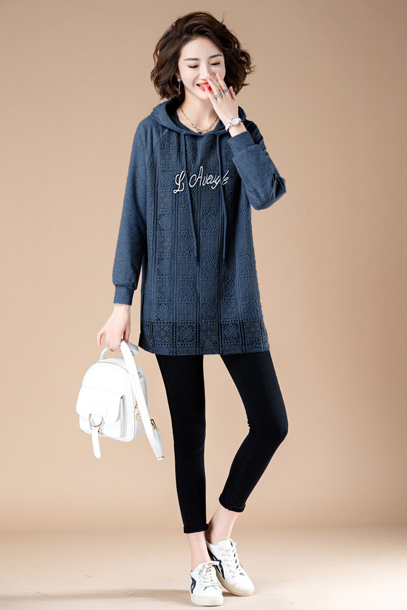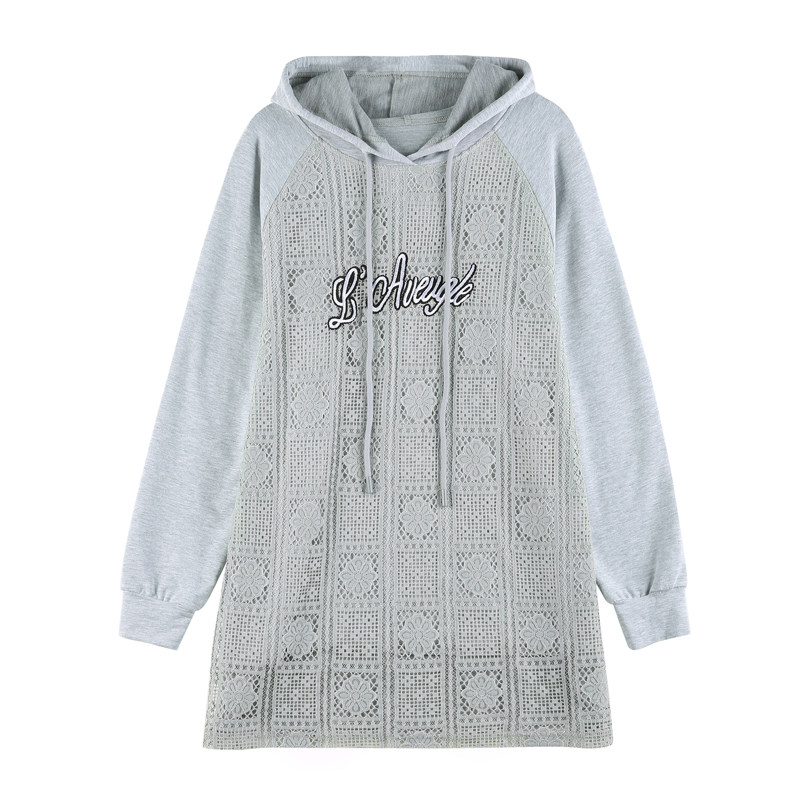 Clearance pick-up counters withdrew the tail order big-name foreign trade women's lace stitching hooded sweater loose fat mm tops