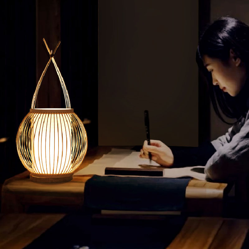 Zen Chinese ancient style bamboo weaving table lamp bedroom bedside tatami Japanese bamboo art lamp homestay tea room decorative lamp