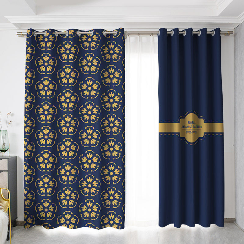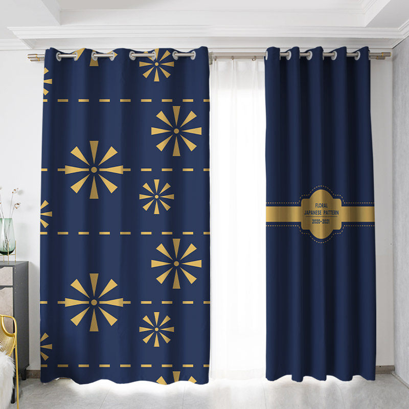 Custom long curtain coarse hemp floral small fresh Japanese flower pattern bedroom living room hook shading perforated curtain cloth