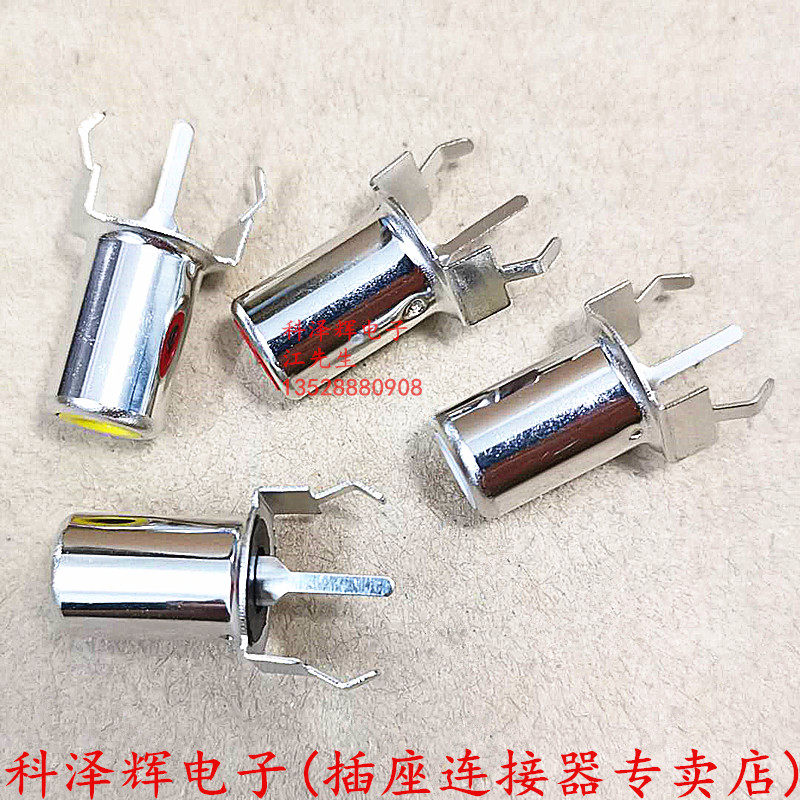 AV-8 4-2B yellow and white vertical 3-foot PCB plug RCA single hole and core lotus plug connector