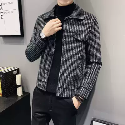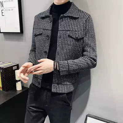 Short lapel jacket men's slim all-match 2021 spring new Korean version of the trend men's houndstooth lapel jacket