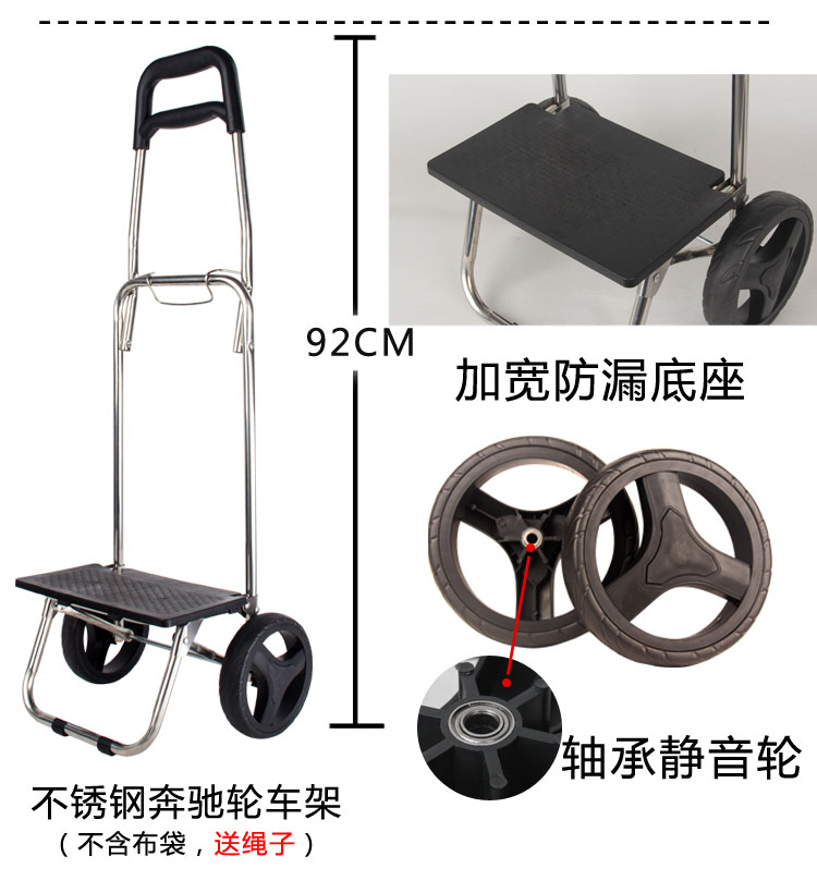 Najia household stainless steel portable shopping cart shelf folding climbing stairs shopping cart small pull cart elderly trolley
