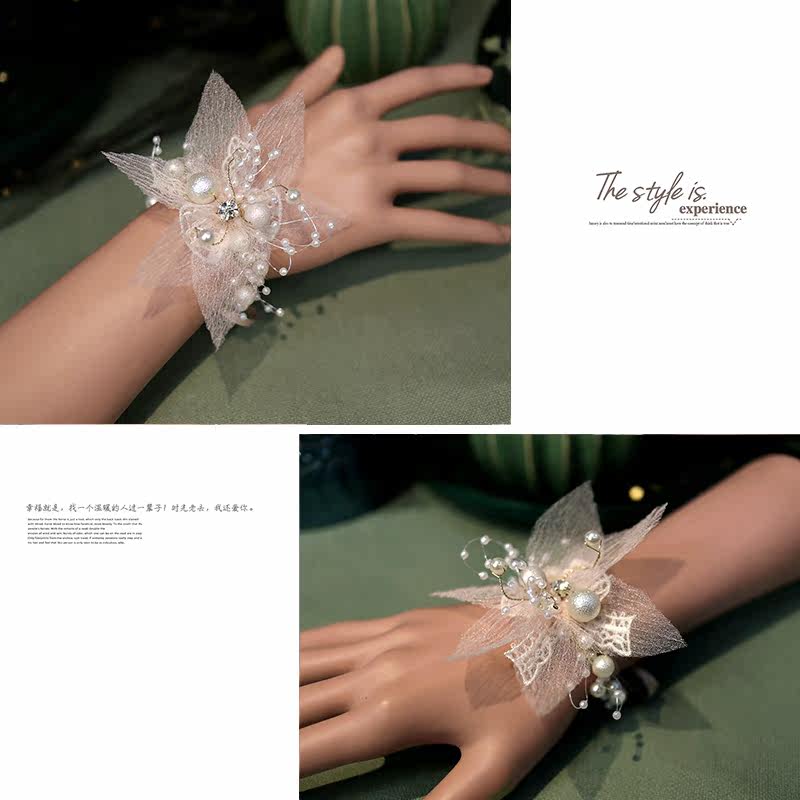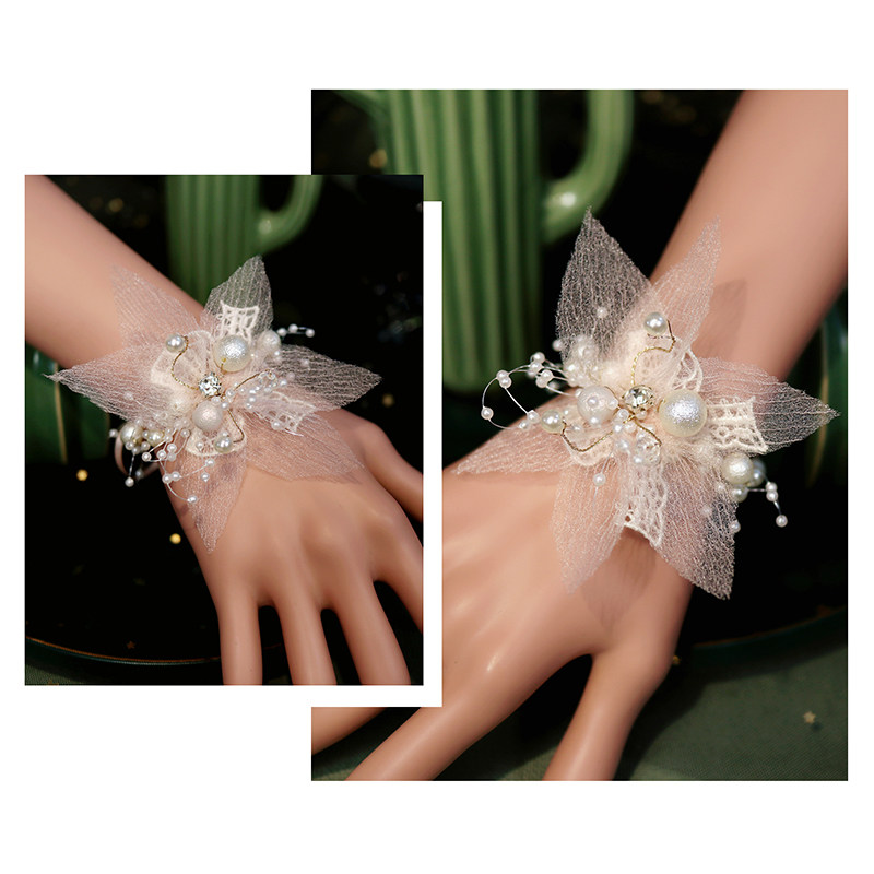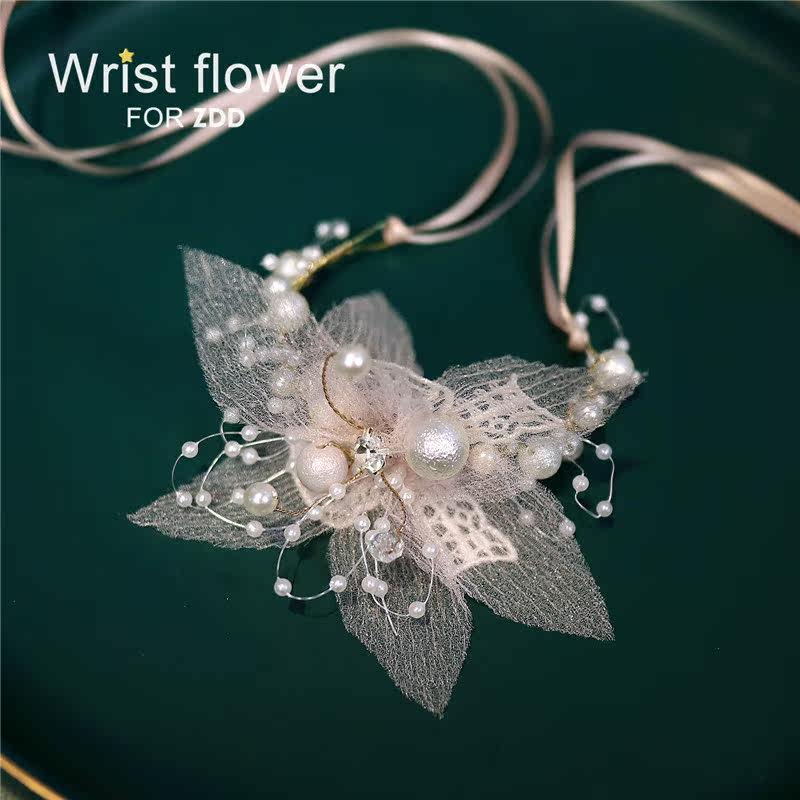 Light pink silk Korean bridal wedding Mori wrist flower bridesmaid sister group simple and beautiful hand flower bracelet children