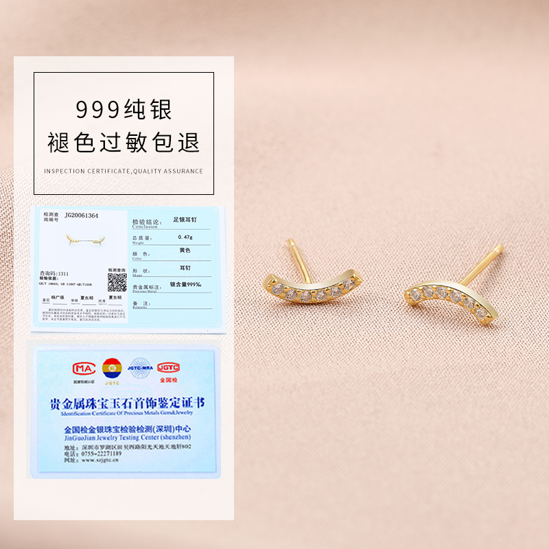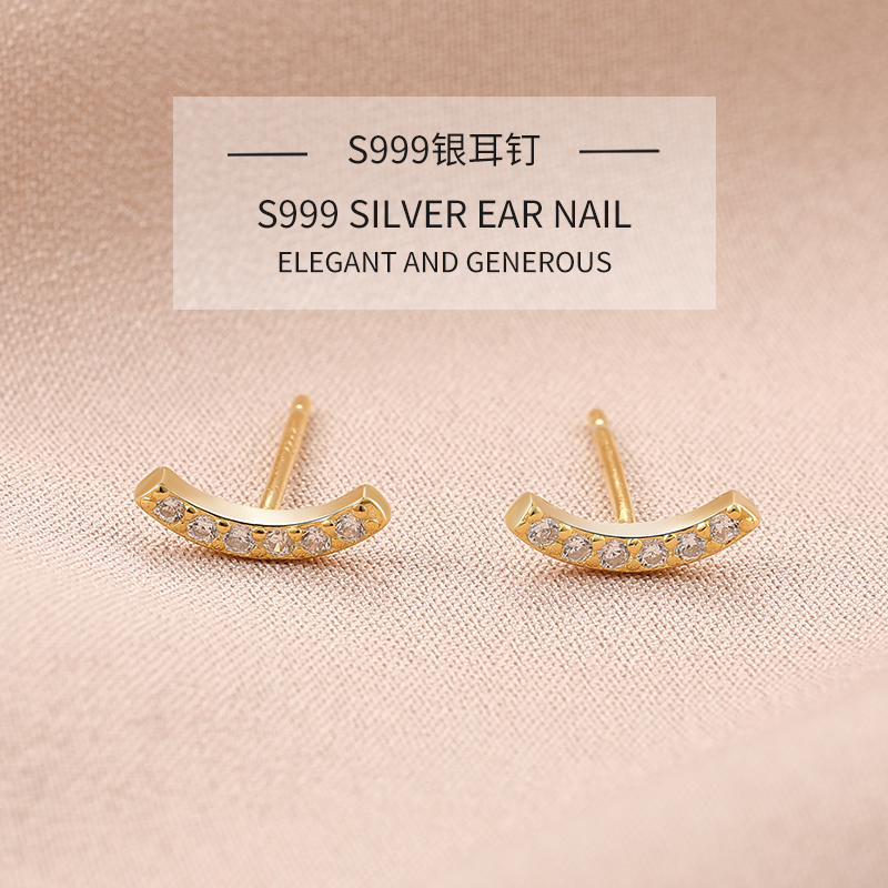 Hypoallergenic 999 sterling silver earrings semi-circular arc micro-set zircon earrings 2021 new trendy simple and small earrings