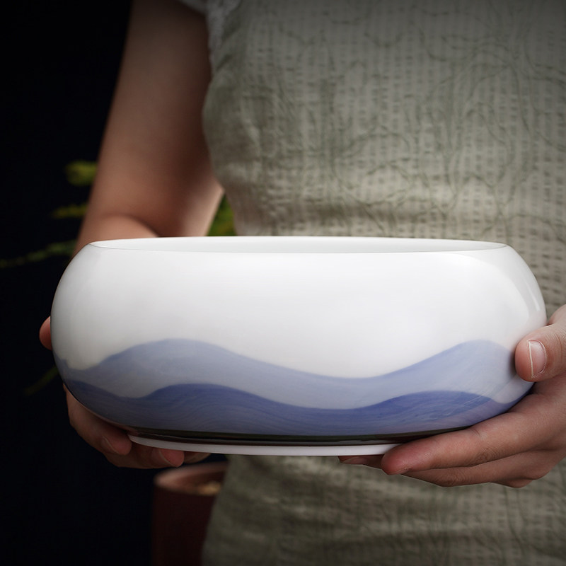 Retro tea washing household large Zen Japanese ceramic cup washing extra large water bowl Kung Fu tea set accessories washing tea cup basin