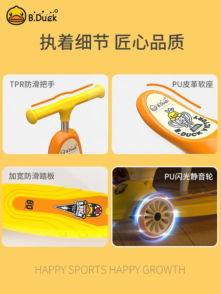 Bduck little yellow duck children's scooter 1-3-6 years old male and female baby two-in-one can sit and ride a sliding car