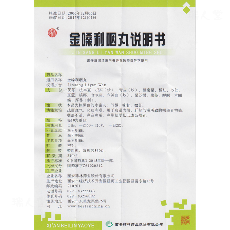 as low as? Yuan Box) Beilin Jinsang Liyan Pills 360 Pills Pharyngeal discomfort hoarseness vocal cords hypertrophy chronic pharyngitis dry throat itching pain is not Jin Noise Liyan Pills Jin Sang Jin Shuang Jin Shuang Li Yan Yan Capsule Jin Sang Li