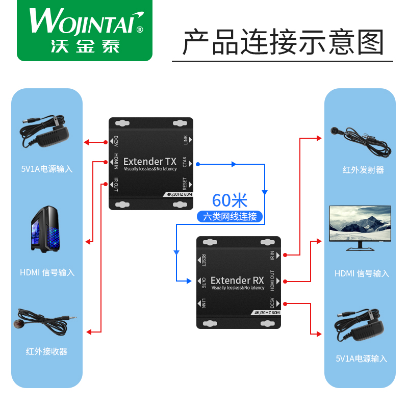 HDMI extender 60 meters single network cable amplifier to RJ45 network 4K high-definition lossless signal transmission with infrared