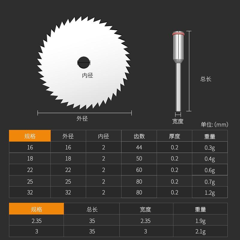 Full set of 5 specifications 2 3mm connector-V21 full set 5 specifications 2 2 35mm connector-851 stainless steel small saw blade (16mm) 5 pieces-776