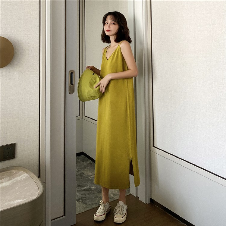 Maternity slip dress Spring and Autumn fashionable split inner knitted dress vest skirt fashion loose over-the-knee long skirt