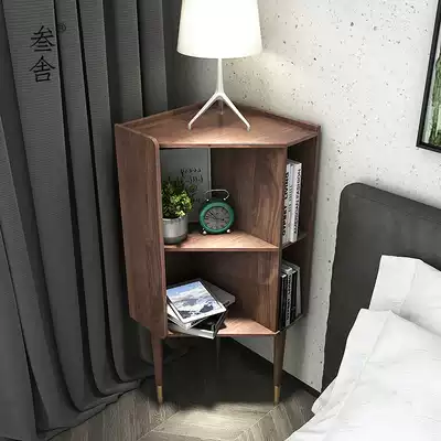 Sanshe black walnut multi-function corner storage cabinet triangle wine cabinet Nordic style small bookcase D4