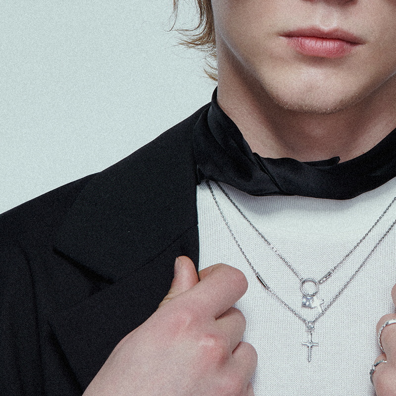 RSNY MEN cross necklace men and women sterling silver fashion simple cold wind street trend European and American couple jewelry
