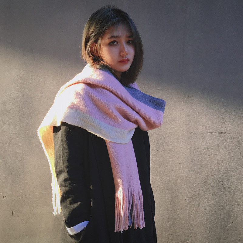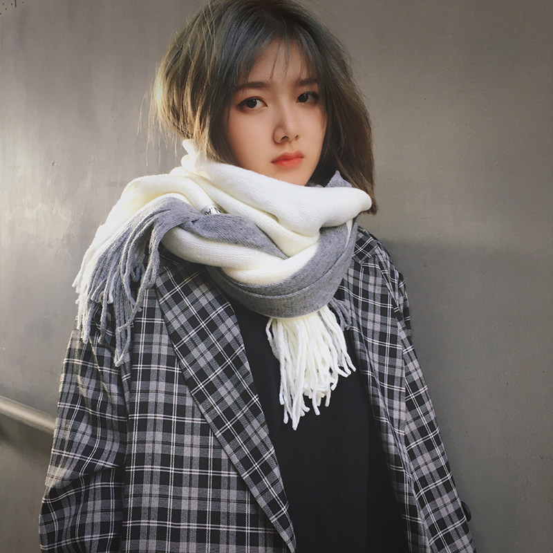 Cai Cai Xiaozhong imitation cashmere scarf wool scarf student thickening warm long version Korean version of the wild fringe autumn and winter