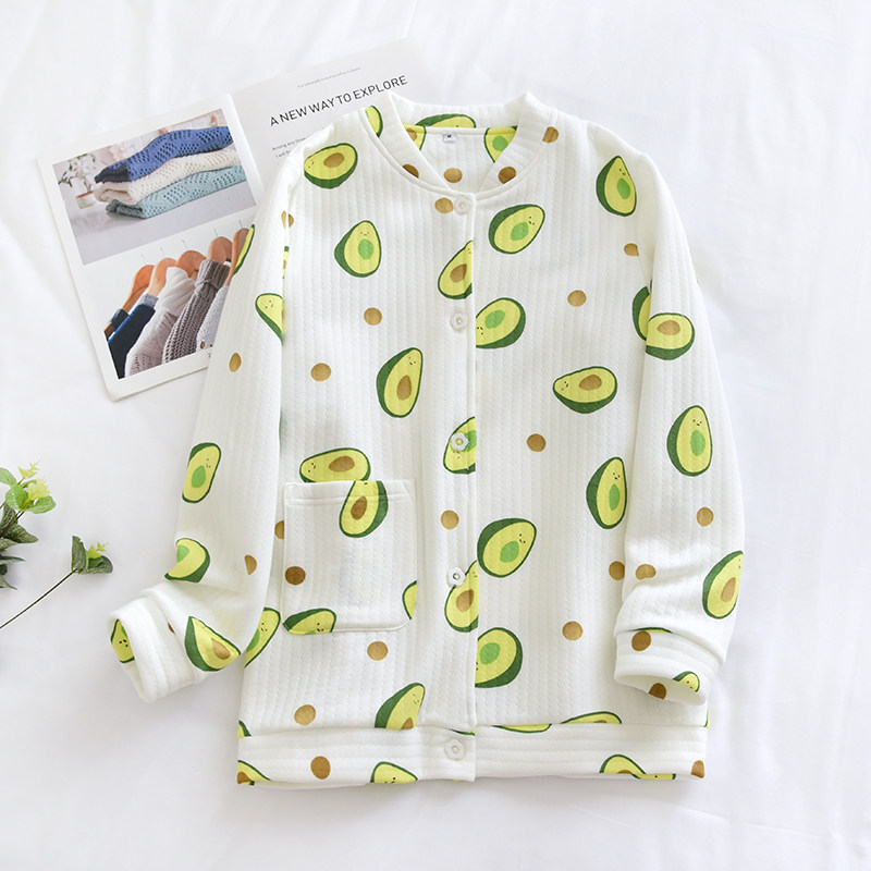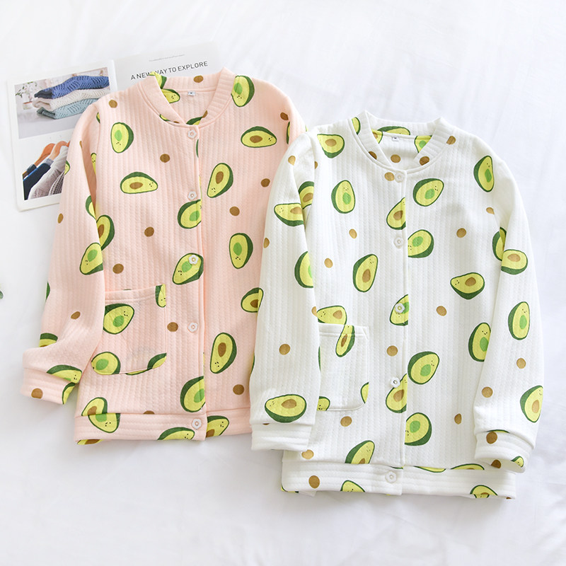 Single Piece Blouse Pyjamas Women's Winter Autumn Winter Long Sleeves Pure Cotton Thickened Air Cotton Clip Cotton Slim cotton Home Clothing Winter Cotton